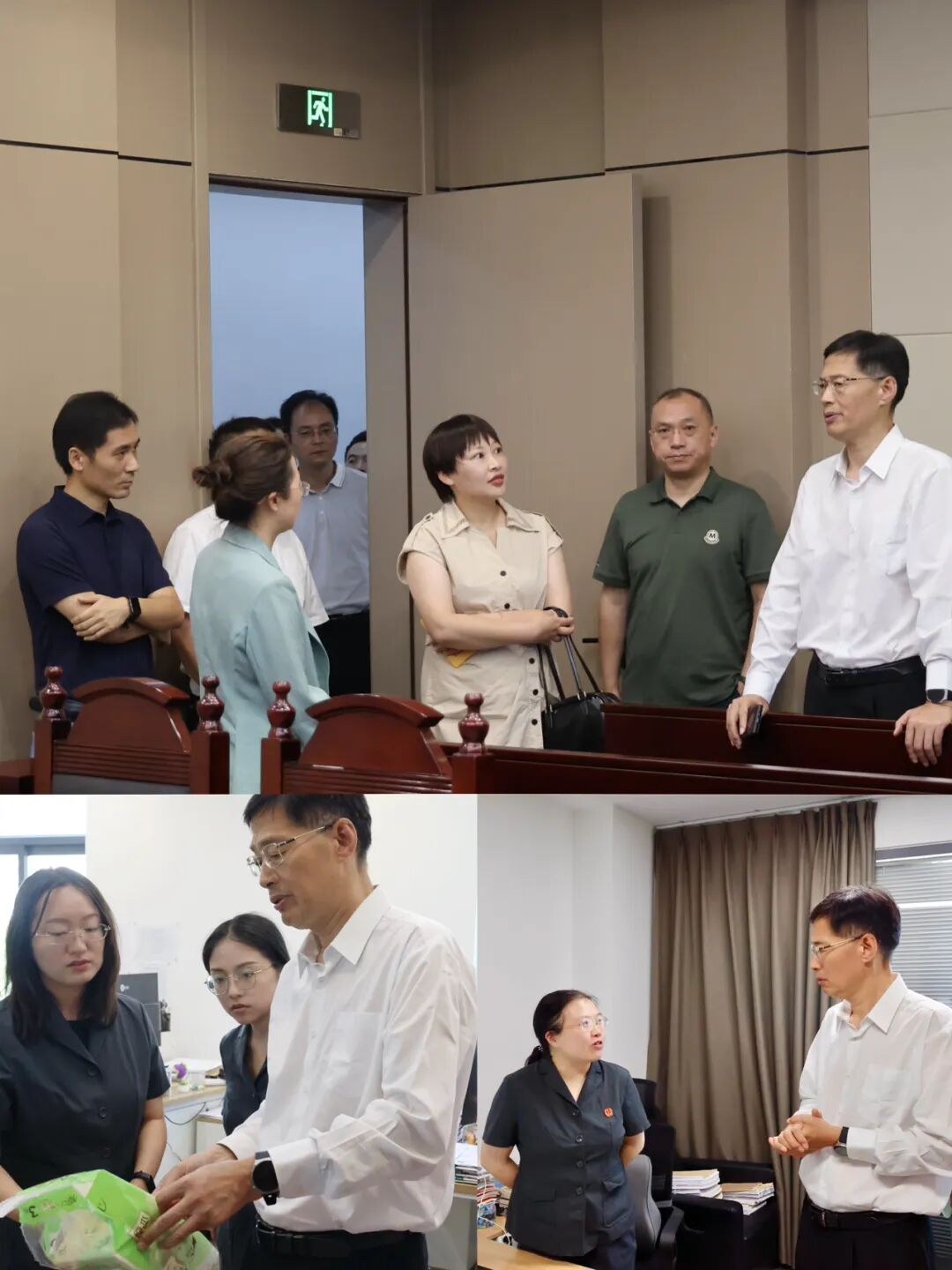7月30日,南通中院党组副书记、副院长周东瑞一行调研通州湾示范区法院工作。通州湾示范区法院党组书记、院长许利飞等参加调研。